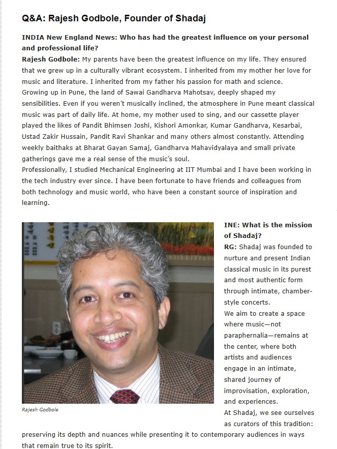 An annual festival in celebration of the music of Pandit Vasantrao Deshpande, a renowned Marathi classical vocalist, was brought to the US this year. Shadaj, a non-profit organization in the Greater Boston area, organized the event at Collin Center for Performing Arts in Andover on October 8, 2023. Rahul Deshpande and Priyanka Barve, showcased their remarkable talents for classical and contemporary music with everything in between, evoking joyous and nostalgic emotions for a diverse audience.
